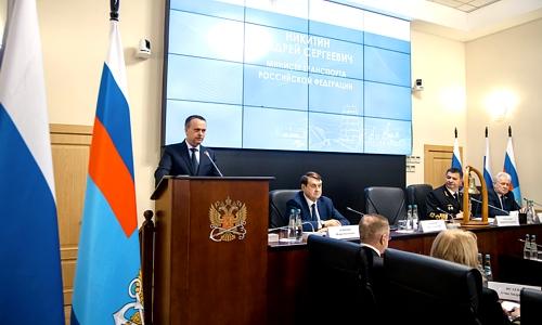 Итоги работы отрасли морского и внутреннего водного транспорта за 2025 год и основные задачи на среднесрочную перспективу до 2028 года рассмотрели на совместном заседании коллегии Росморречфлота и Общественного совета при агентстве. Участие в мероприятии приняли Министр транспорта Андрей Никитин, советник Президента России, специальный представитель Президента по международному сотрудничеству в сфере транспорта Игорь Левитин, Председатель комитета Государственной Думы по транспорту и развитию транспортной инфраструктуры Евгений Москвичев, заместитель Министра транспорта Александр Пошивай, председатель Общественного совета при Росморречфлоте Анна Исаева, работники агентства и подведомственных предприятий, представители профильных организаций.