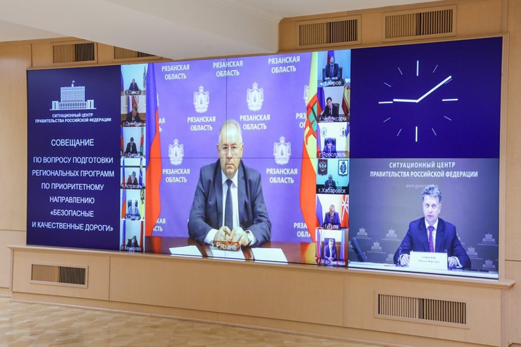 В совещании, прошедшем в Ситуационном центре Дома Правительства РФ, приняли участие руководитель Федерального дорожного агентства Роман Старовойт, заместитель начальника ГУОБДД МВД РФ Павел Бугаев, ответственные сотрудники Аппарата Правительства Российской Федерации и Минтранса России, представители администраций субъектов Российской Федерации, претендующих на участие в проекте.
