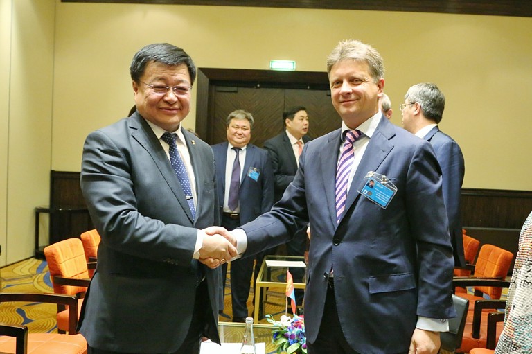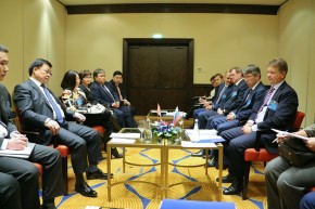 9 декабря «на полях» Министерской конференции ЭСКАТО по транспорту состоялась встреча Министра транспорта РФ Максима Соколова с Министром развития дорог и транспорта Монголии Д. Ганбатом