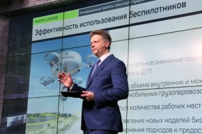 Министр рассказал присутствующим о значимых информационных и телекоммуникационных изменениях в мире транспорта в ближайшем будущем. Так, важную роль в работе транспортного комплекса играет развитие интеллектуальных транспортных систем (ИТС). Использование ИТС ускоряет автоматизацию транспортной инфраструктуры, позволяет осуществлять дистанционный мониторинг транспортных потоков, создавать системы фото- и видеофиксации правонарушений, центры организации дорожного движения и МФЦ. Говоря о беспилотном транспорте, глава Минтранса отметил, что беспилотные летательные аппараты применяются в самых разных сферах, например, для аэрофототопографических работ при строительстве, составления кадастровых планов промышленных объектов, транспортной инфраструктуры, поселков, дачных массивов, и многих других целей. «В дорожной отрасли уже появились беспилотные автомобили, тестирование которых поэтапно проводится на дорогах общего пользования», – уточнил он. Среди эффективных показателей использования таких систем – значительное снижение социального риска гибели в ДТП, рост объема внутренних и международных автомобильных грузоперевозок, появление новых моделей бизнеса за счет изменения подходов к предоставлению транспортно-логистических услуг. По словам М. Соколова сюда же можно отнести технологию «Умного автомобиля», среди возможностей которого – дистанционный запуск машины, бесключевой доступ к автомобилю, оповещение о тревогах, отслеживание о местоположении транспортного средства.