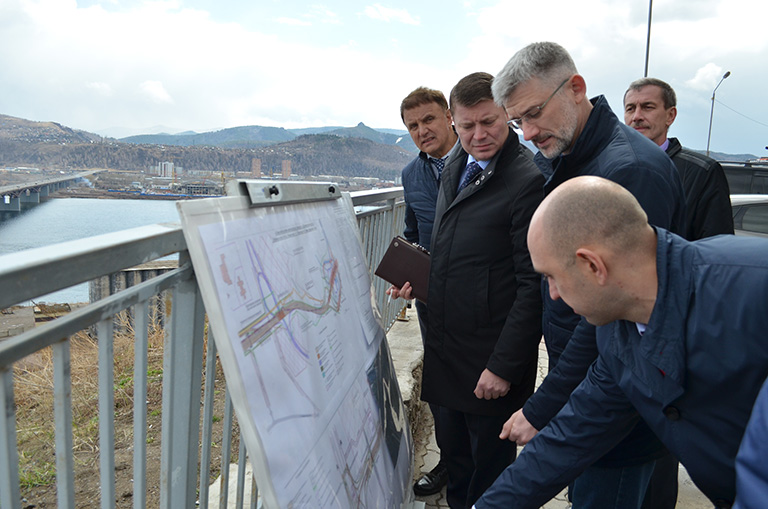 Также первый заместитель Министра ознакомился с проектами обустройства федеральной автодороги Р-257 «Енисей» для повышения безопасности дорожного движения, а также проверил ход работ по строительству подходов к Четвертому автомобильному мосту через р. Енисей (строительство транспортной развязки в микрорайоне «Тихие Зори» и автодороги в створе ул. Волочаевская от ул. Дубровинского до ул. Копылова), призванных обеспечить транспортную доступность к ключевым объектам Универсиады 2019 года.