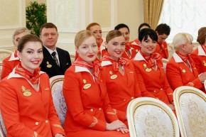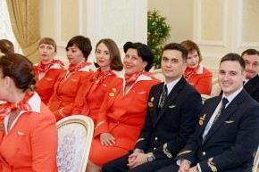 Министр отметил работу старшего инструктора-проводника Майи Леоновны Петросян, принимавшей непосредственное участие в реализации проектов по внедрению нового уровня сервиса в классах обслуживания «Бизнес» и «Эконом», по подготовке старших бортпроводников и инструкторского состава. Более 14 лет она обучала персонал департамента аварийно-спасательным процедурам на различных тренажерах. Более 24 тыс. часов налета имеет бортпроводник Марина Владимировна Коваленко, принимавшая участие в вводе в эксплуатацию новых типов воздушных судов. В настоящее время Марина Владимировна выполняет полеты в составе экипажа на воздушных судах А319, А320, А321, передавая накопленный опыт молодым сотрудникам и демонстрируя высокий уровень подготовки в области предоставления сервисных услуг.