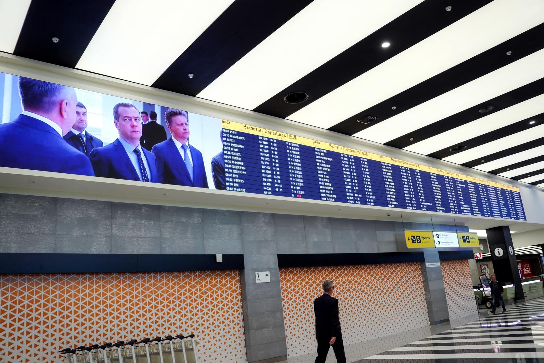 Министр транспорта РФ Максим Соколов проинспектировал работу нового терминала В аэропорта Шереметьево, построенного к Чемпионату мира по футболу 2018