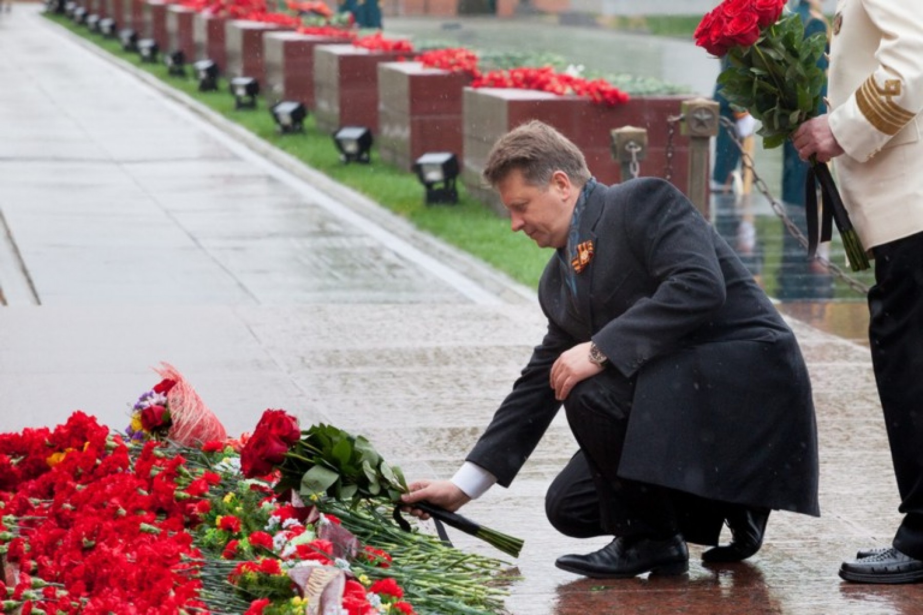 6 мая Министр транспорта РФ Максим Соколов возложил венки к Могиле Неизвестного солдата в Александровском саду Московского Кремля