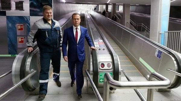 Председатель Правительства РФ Дмитрий Медведев посетил построенную станцию петербургского метро «Новокрестовскую»