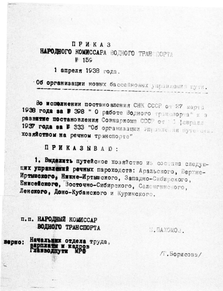 1 апреля 1938 года приказом Наркома водного транспорта СССР № 159 было образовано Енисейское бассейновое управление пути – специализированное предприятие по обслуживанию и развитию водных путей Енисейского бассейна, сокращённое название – Енисейский БУП. Одновременно в составе БУПа было организовано три техучастка: Минусинский технический участок – для обслуживания пути протяжённостью 929 километров, Красноярский технический участок – с протяжённостью пути 1239 километров и Енисейский технический участок – с протяжённостью 2101 километр. С того времени и до наших дней организация путейцев Енисея существует как самостоятельная структура внутреннего водного транспорта страны. Эти преобразования позволили не только улучшить, но и увеличить протяжённость судоходных путей, значительно повысить уровень их технического обслуживания. Перед началом Великой Отечественной войны Енисейское бассейновое управление пути обслуживало уже 5041 километр водных путей, из них на 3300 километрах действовали освещаемые навигационные знаки: на берегу устанавливались ацетиленовые фонари, на бакенах – керосиновые. Протяжённость гарантированных габаритов пути составляла 2200 километров. В 1940 году по приказу Наркома речного флота СССР за № 395 от 10.09.40 г. Енисейское бассейновое управление пути приняло от Главного управления Северного морского пути Енисейский гидрографический отдел, расположенный в Игарке, со всеми его функциями по обслуживанию Нижнего Енисея на участке от города Игарка до устья. Гидроотдел был включён в состав Енисейского технического участка БУПа.