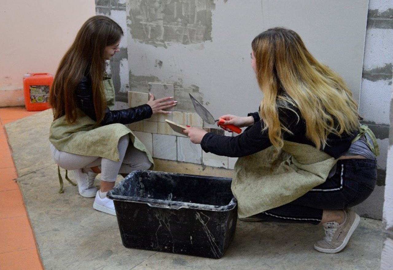 С целью качественной подготовки обучающихся отделения среднего профессионального образования и организации их практической подготовки создан павильон «Учебные мастерские», включающий мастерские штукатурных и облицовочных работ, механообрабатывающие мастерские, мастерские слесарно-монтажных работ.