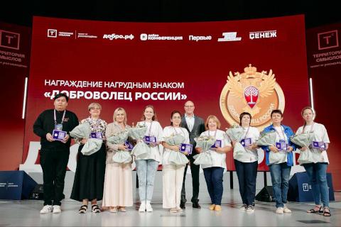 Руководитель Росмолодежи Григорий Гуров отметил символичность вручения первых знаков «Доброволец России» на «Добро.Конференции», объединившей более 600 человек.