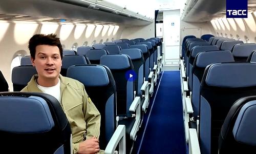 Минпромторг России показал интерьер импортозамещенного самолета Superjet 100. Видео салона лайнера опубликовано в Telegram-канале министерства.