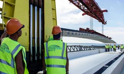 Поезд над морем. На Крымском мосту строители уложили первые железнодорожные рельсы