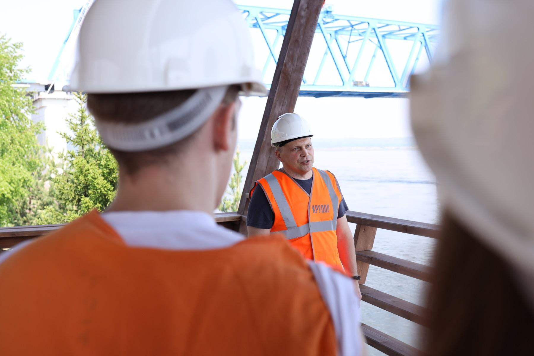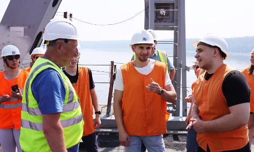 В прошлом сезоне студенты также выезжали на Высокогорский мост, тогда они увидели процесс монтажа металлоконструкций пролетных строений, а также возведения опор, в том числе временных.