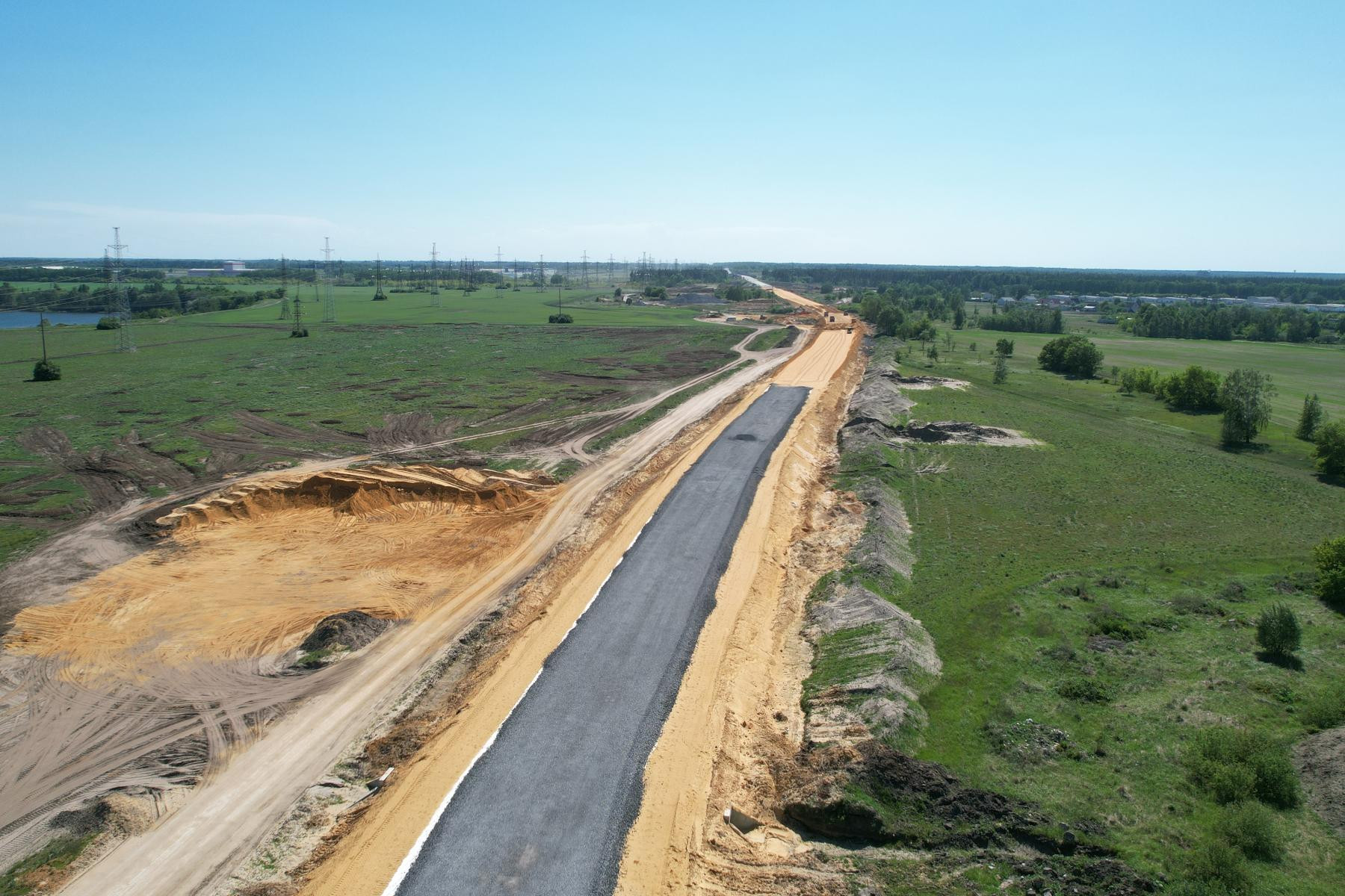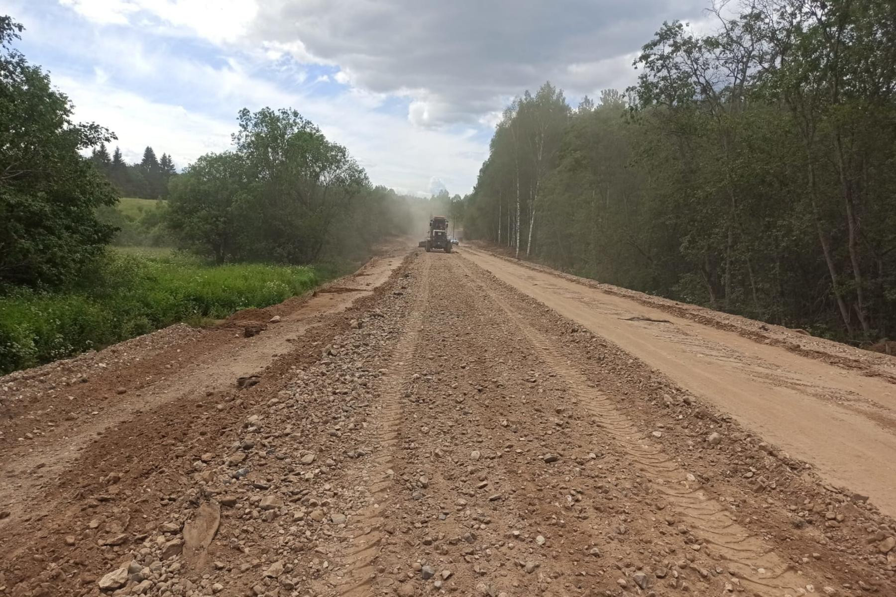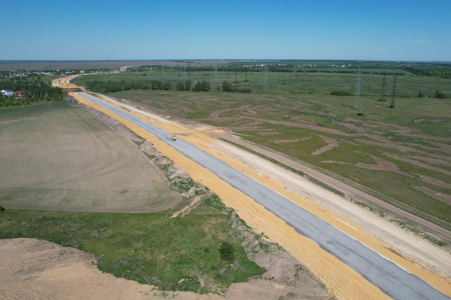 Работы на объекте начались в 2023 году и выполняются поэтапно. Сейчас строительные бригады устраивают основание из щебеночно-песчано-гравийной смеси. Кроме того, ведется монтаж наружного освещения на участках, проходящих через населенные пункты, а также укладка асфальтобетонного покрытия.