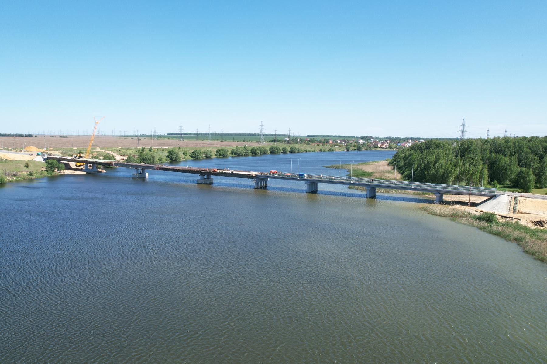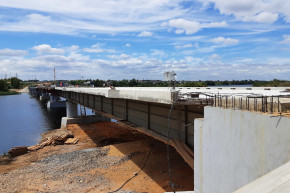 Первая половина 365-метрового моста со стороны Казинки с железобетонными несущими конструкциями была построена в прошлом году. Сейчас на финишной прямой – возведение второй части сооружения с металлическими пролетными балками. Бетонные работы завершены. Специалисты занимаются гидроизоляцией монолитной плиты. Уже в июле подрядчик планирует здесь уложить асфальтобетонное покрытие. Параллельно начат монтаж конструкций перильного ограждения, системы водосбора. Работы ведутся под постоянным надзором строительного контроля.
