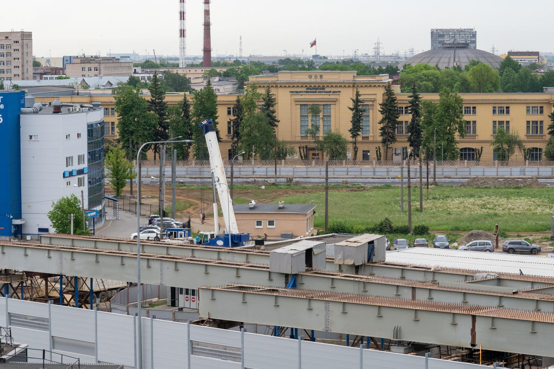 Специалисты завершили монтаж двух укрепленных балок пролетного строения будущего путепровода через Дунайский проспект. Это один из самых сложных и масштабных этапов строительства крупного инфраструктурного объекта. Выполнено устройство фундаментов тел опор и подпорных стен основного хода и съездов, смонтировано 7 тыс. т металлоконструкций пролетного строения. Продолжаются работы по монтажу армирующего каркаса, заливке железобетонной плиты проезжей части и устройству асфальтобетонного покрытия на строящемся путепроводе и капитальный ремонт трамвайного полотна на улице Ленсовета. Подрядная организация выполняет установку шумозащитных экранов и барьерного ограждения, а также возводит два подземных пешеходных перехода.