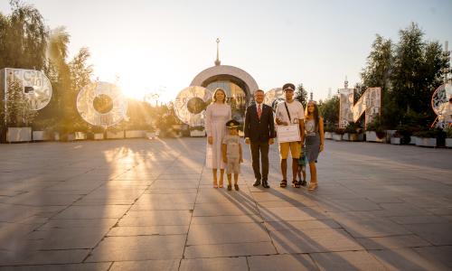 В заключительный день работы Международной выставки-форума «Россия» на ВДНХ Министр транспорта РФ Роман Старовойт и генеральный директор АНО «Дирекция выставки достижений «Россия» Наталья Виртуозова вручили семье из Москвы особенный подарок – сертификат на путешествие по городам России. Счастливчиками стали Дмитрий, Инна, а также их дети Дамир и Захар, которые пришли сегодня на ВДНХ, чтобы посетить выставку «Россия».