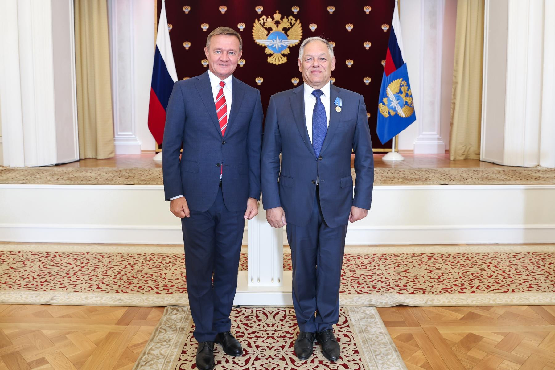 Медалью «За заслуги в развитии транспортного комплекса России» отмечен председатель правления ГК «Автодор» Вячеслав Петушенко. Среди врученных сегодня наград – медаль Петра Губонина, медаль «За строительство транспортных объектов», нагрудный знак «Почетный дорожник России».