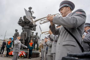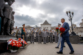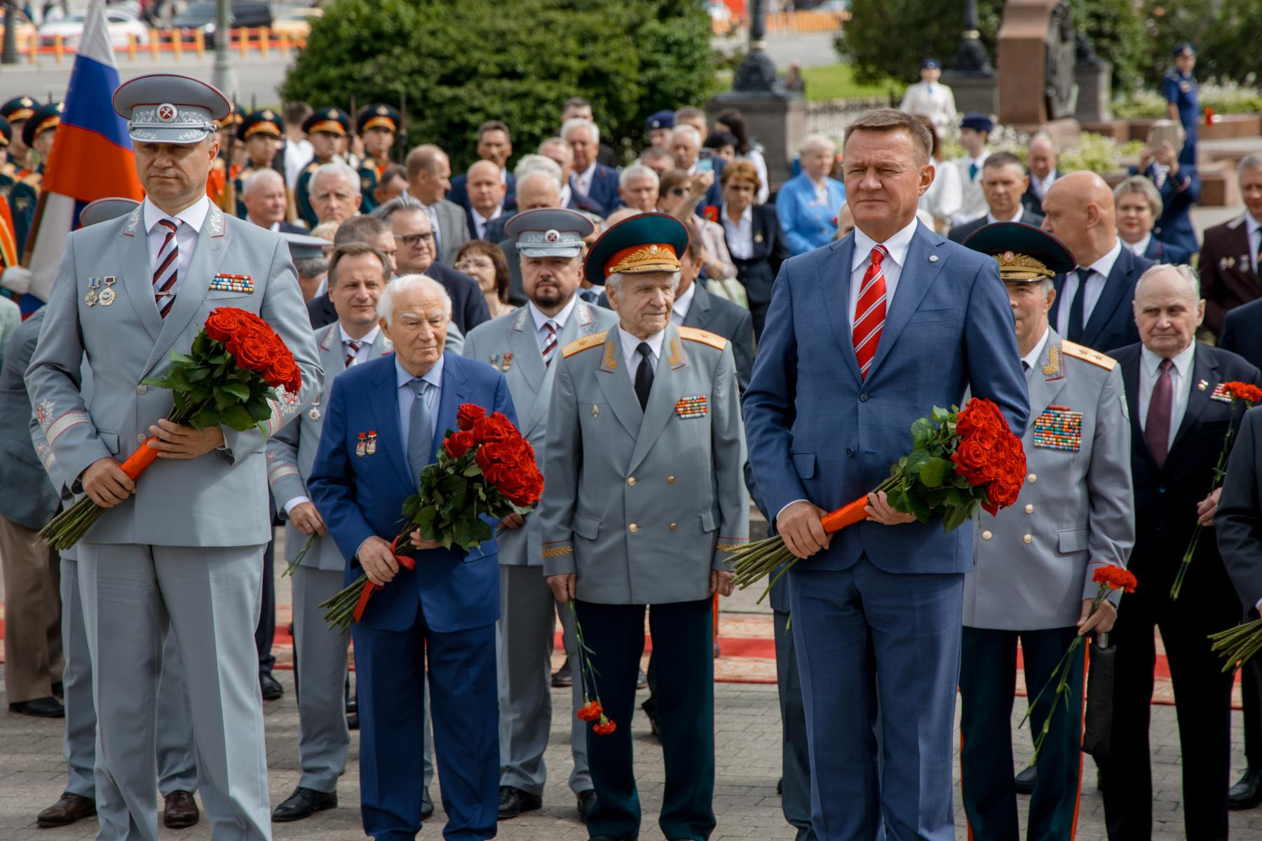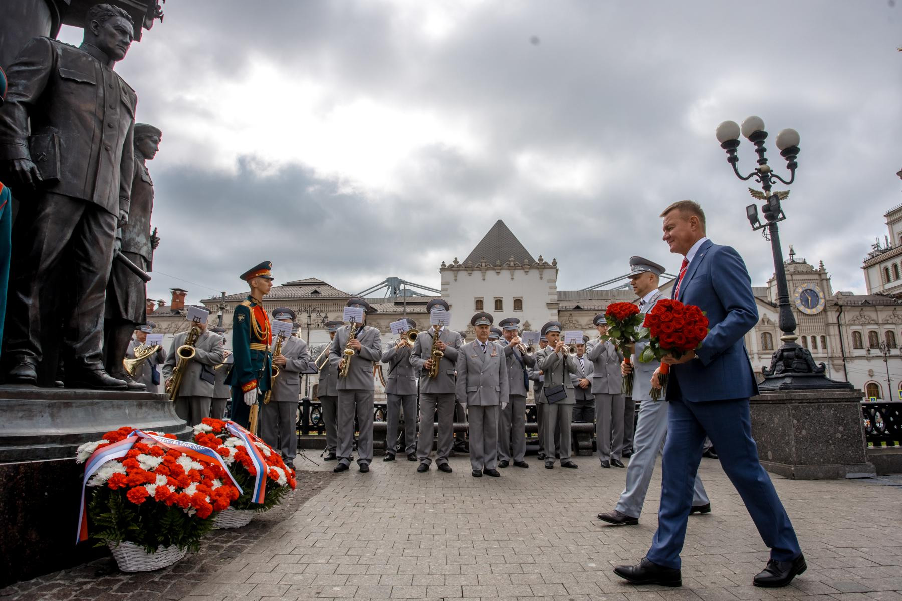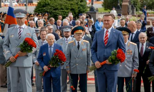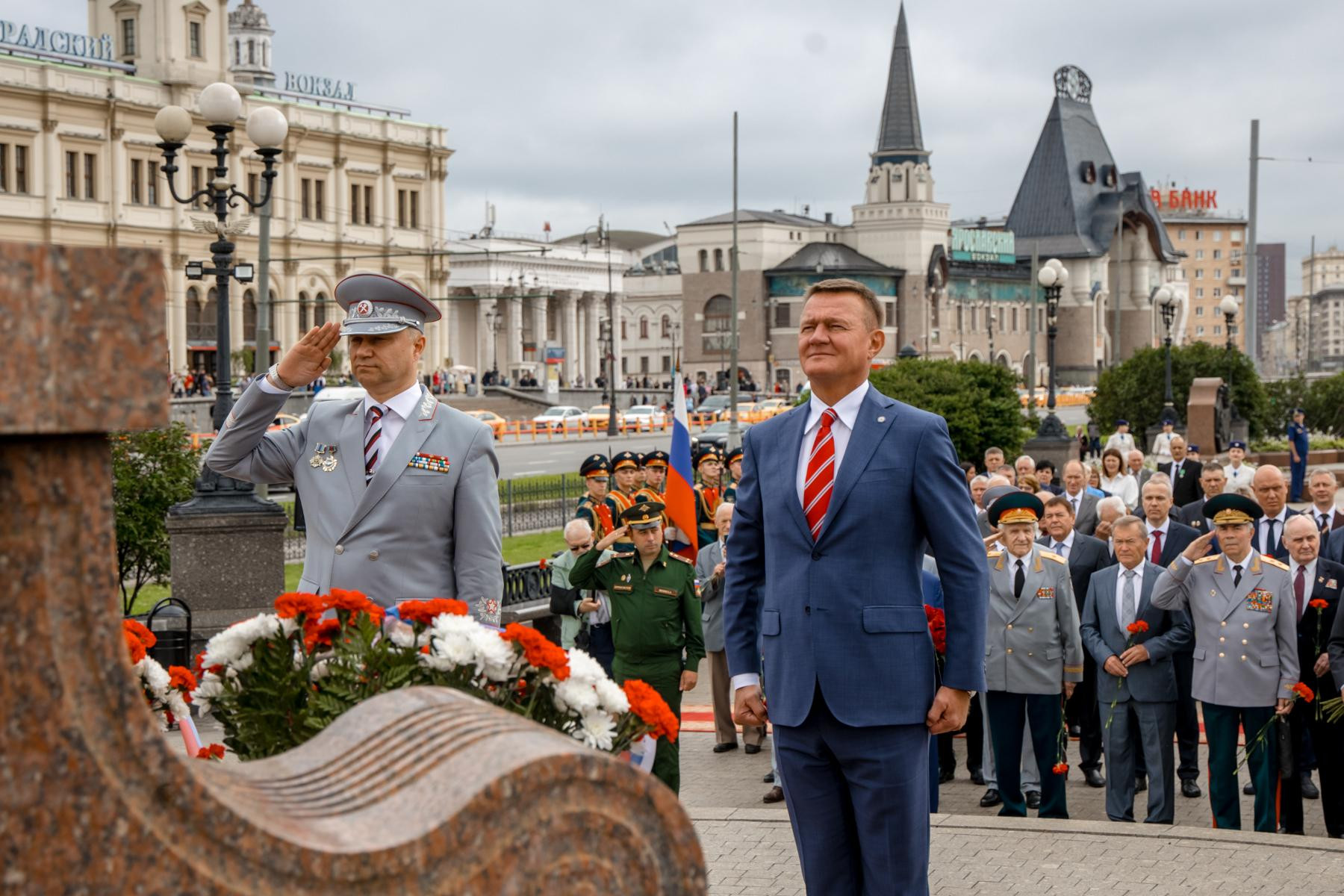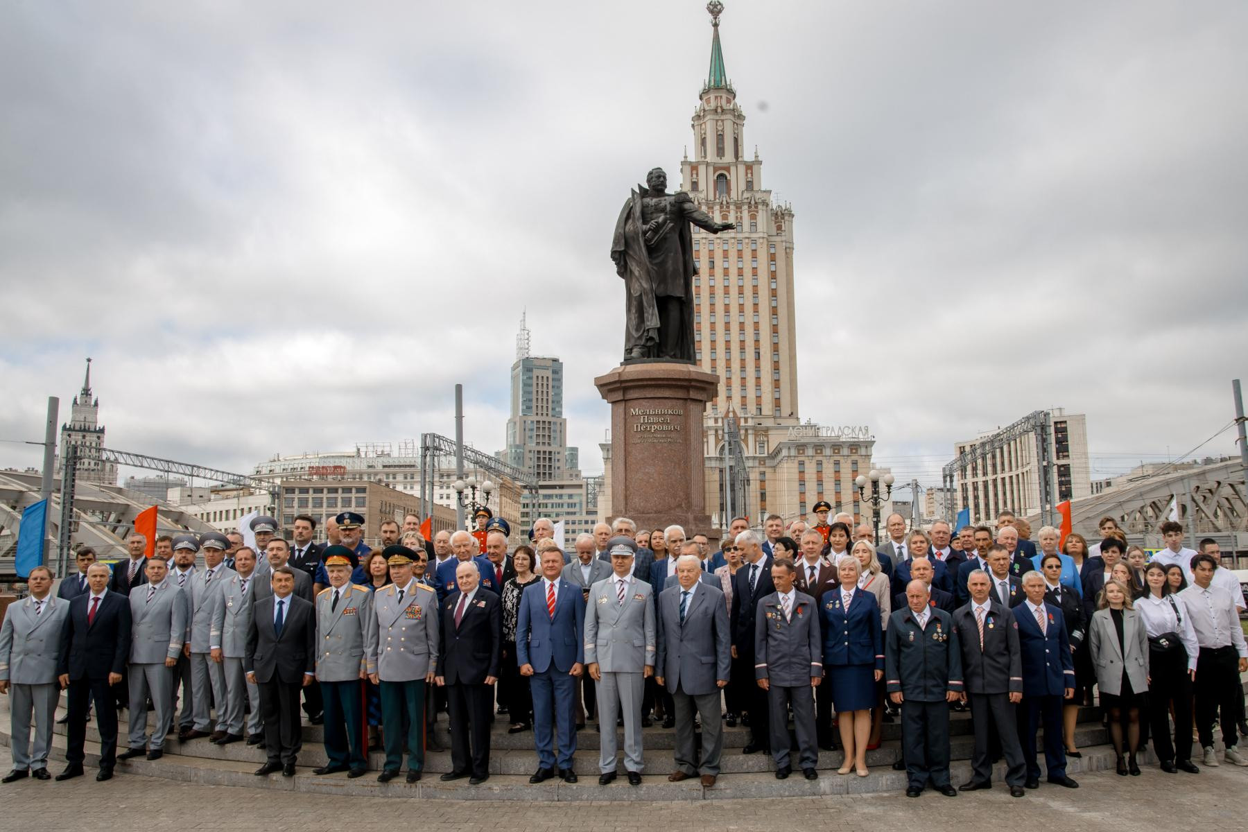 В рамках торжественных мероприятий Роман Старовойт и Олег Белозёров вместе с ветеранами железнодорожной отрасли возложили цветы к памятнику первому Министру путей сообщения Российской Империи Павлу Петровичу Мельникову, расположенному на Комсомольской площади.