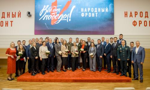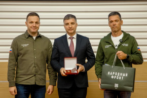 В Исполкоме «Народного фронта» прошла торжественная церемония награждения представителей транспортного комплекса нагрудным знаком «Народный фронт. Всё для Победы!». Заместитель руководителя Исполкома Народного фронта Борис Подольный вручил нагрудный знак Министру транспорта Роману Старовойту, а также руководителям подведомственных Минтрансу организаций и предприятий.