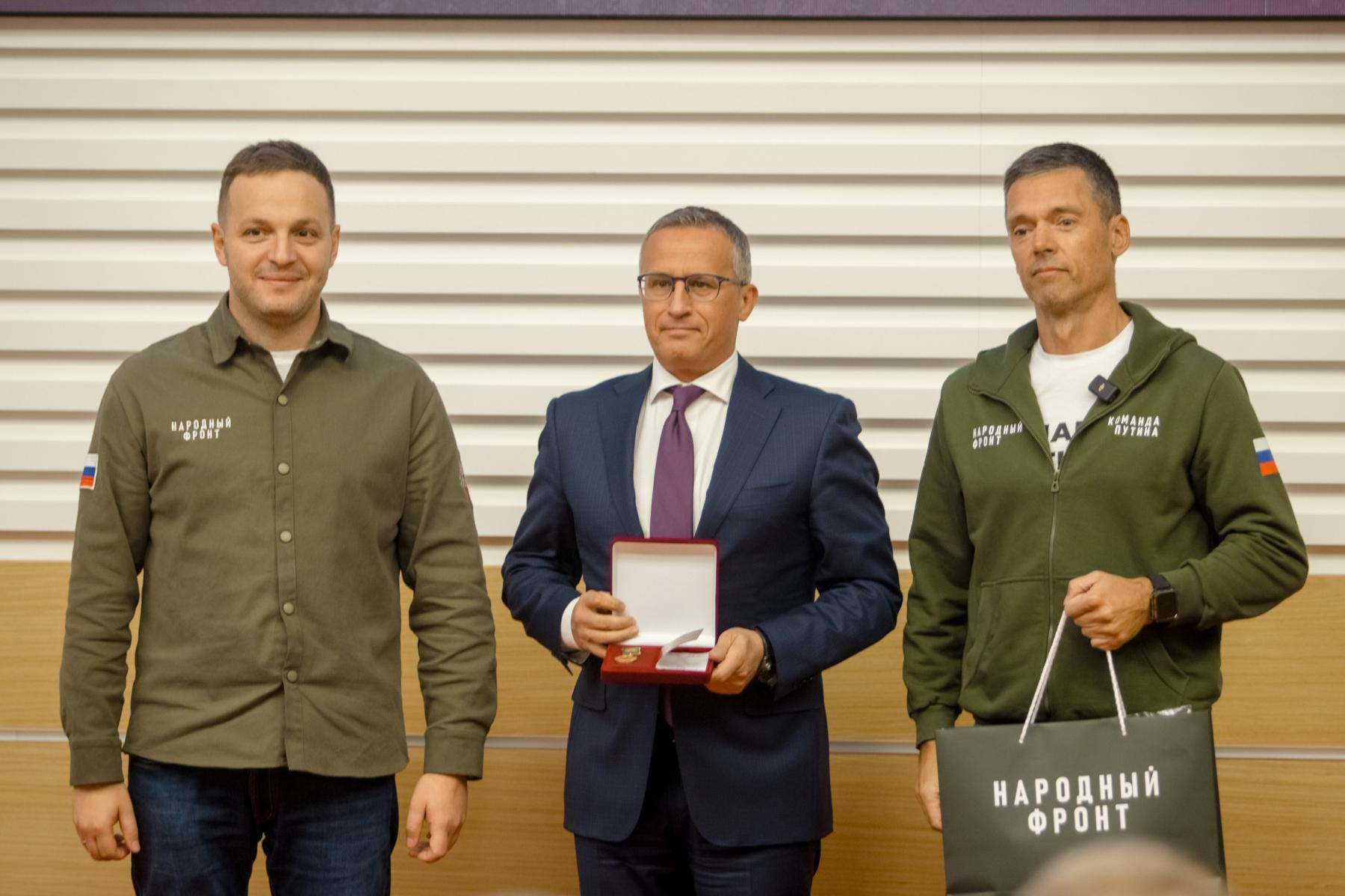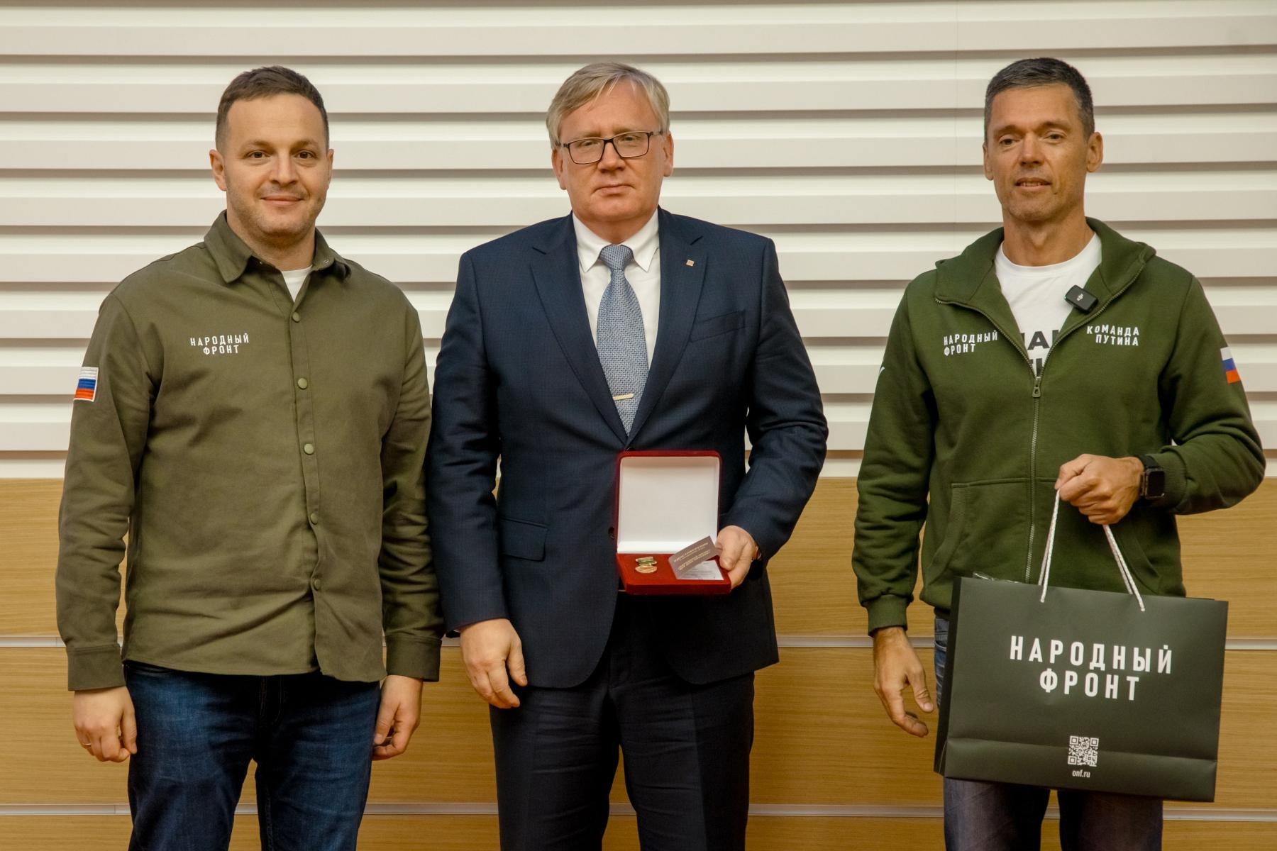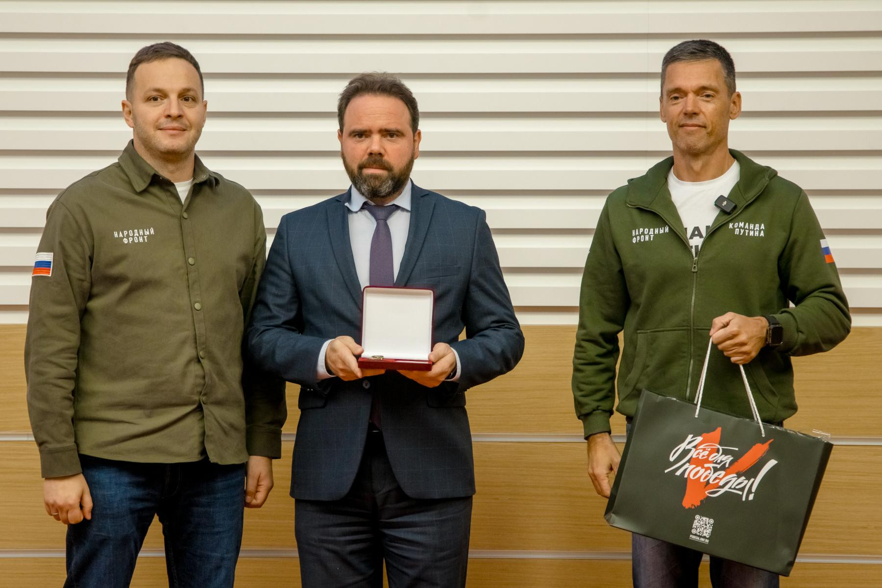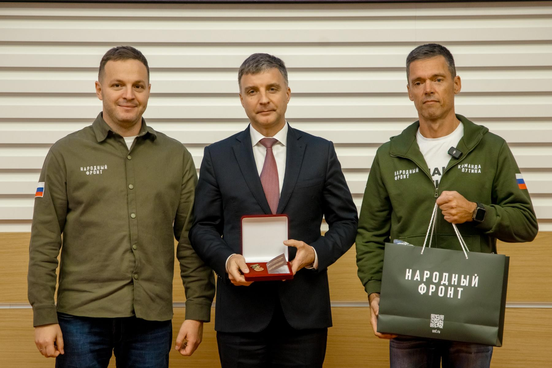 «Сегодня мы выражаем благодарность сотрудникам федеральных органов исполнительной власти. Это патриоты своей страны, как и все люди, участвующие в деятельности Народного фронта под девизом «Всё для Победы!». Здесь те, кто помогал фронту, кто жертвовал средства. Это очень важно, так как каждый рубль – это спасенная на передовой жизнь. Сегодня мы награждаем 56 человек, но будут также проводиться мероприятия непосредственно в самих ведомствах, потому что людей, которые помогают, тысячи», – подчеркнул заместитель руководителя Исполкома Народного фронта Борис Подольный.