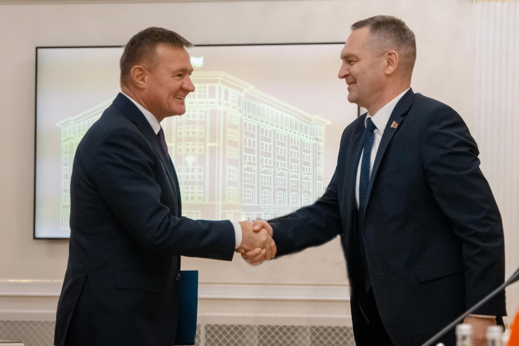 В стенах Минтранса России состоялась встреча Министра транспорта РФ Романа Старовойта с Министром транспорта и коммуникаций Беларуси Алексеем Ляхновичем.