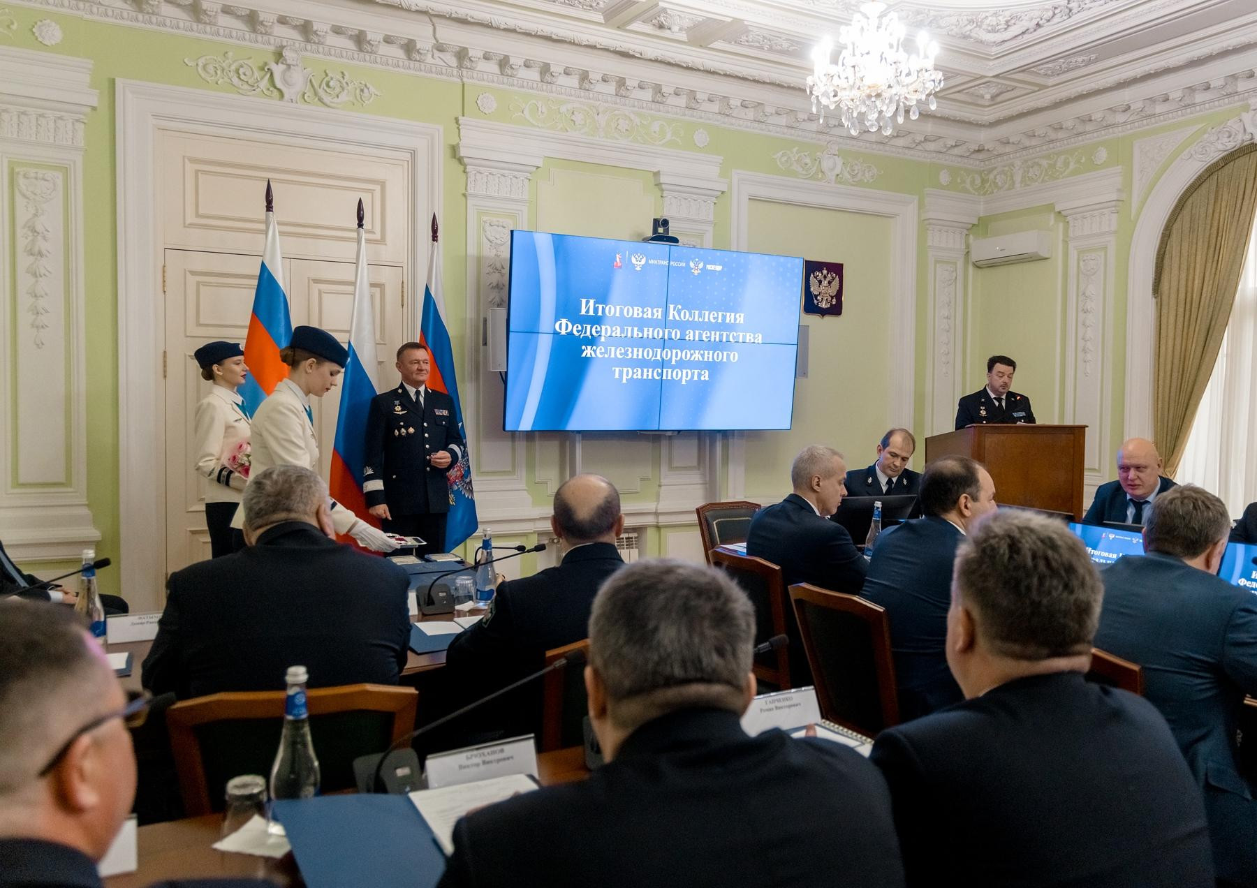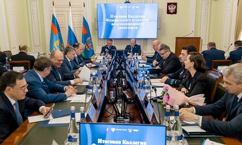 В Росжелдоре состоялось заседание Коллегии агентства, на котором подведены итоги 2024 года и озвучены планы на предстоящий период. В мероприятии приняли участие Министр транспорта Роман Старовойт, руководитель Росжелдора Александр Сахаров, представители Государственной Думы, ОАО «РЖД», Общественного совета при Росжелдоре, Союза операторов железнодорожного транспорта и других отраслевых ассоциаций, а также руководители территориальных управлений агентства и высших учебных заведений железнодорожного транспорта.