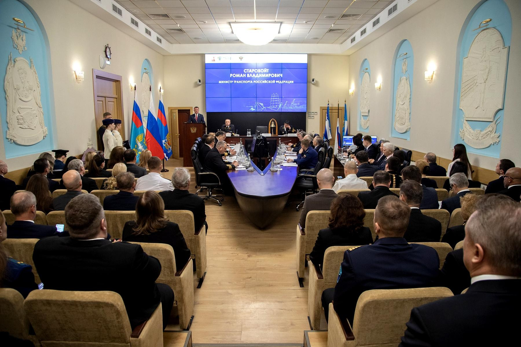 С приветственным словом к участникам мероприятия обратился Министр транспорта Роман Старовойт. Он подчеркнул, что во все времена флот решал задачи государственного значения и продолжает это делать сейчас, даже в условиях современных вызовов. «Сегодня за счет морского флота обеспечивается международная торговля с дружественными странами Российской Федерации. И, конечно, наша задача – обеспечить бесперебойную, безаварийную и, самое главное, безопасную работу флота на благо экономики нашей страны», – сказал он.