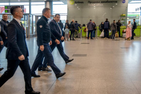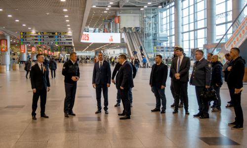 Глава Минтранса Роман Старовойт осмотрел зоны регистрации внутренних и международных рейсов, стойки регистрации, зону вылетов международных рейсов, выходы на посадку, центр семейного пребывания пассажиров с детьми, а также медсанчасть аэропорта.