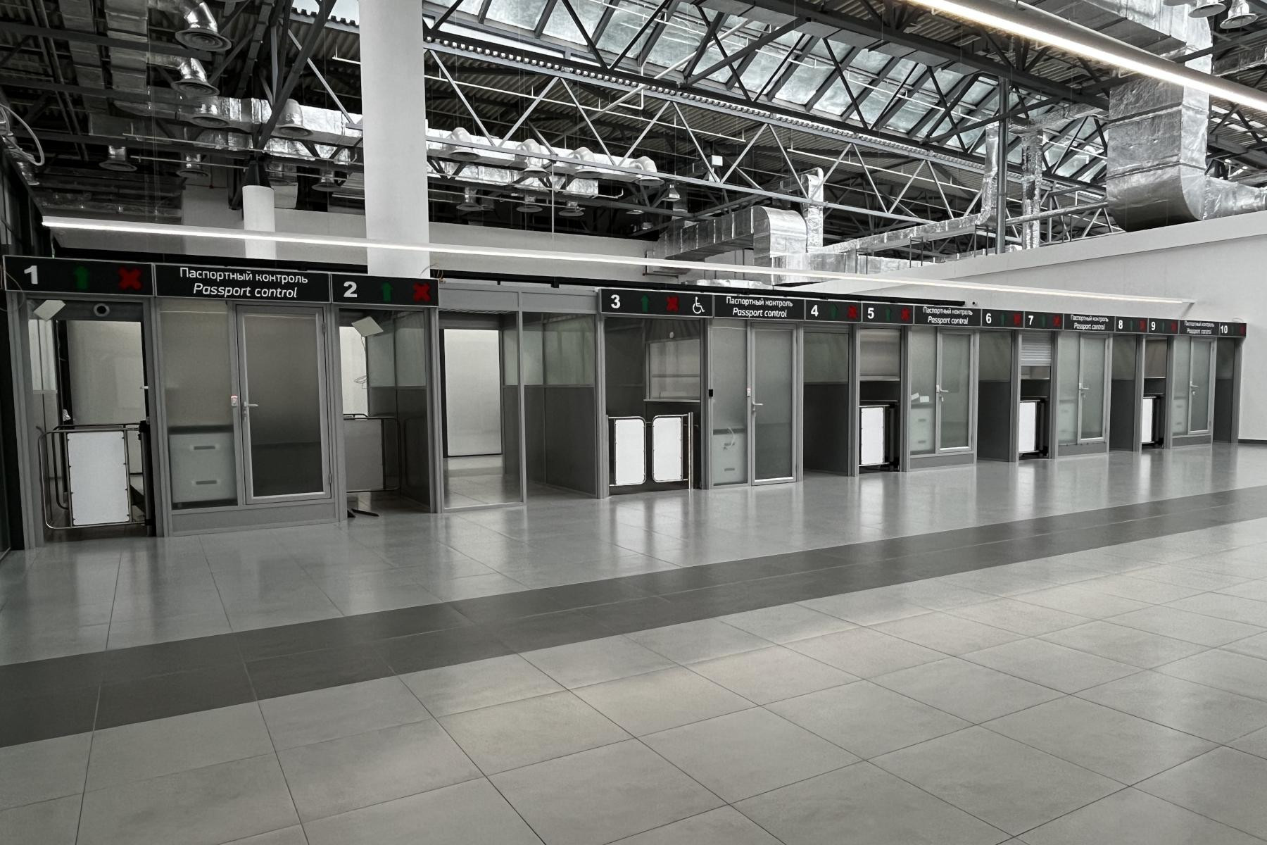 В терминале работает воздушный пункт пропуска через государственную границу. На его оснащение из федерального бюджета было направлено более 800 млн рублей. Пропускная способность погранперехода выросла в 2 раза – с 300 до 600 пассажиров в час. Пункт пропуска оборудован 30 кабинами паспортного контроля.