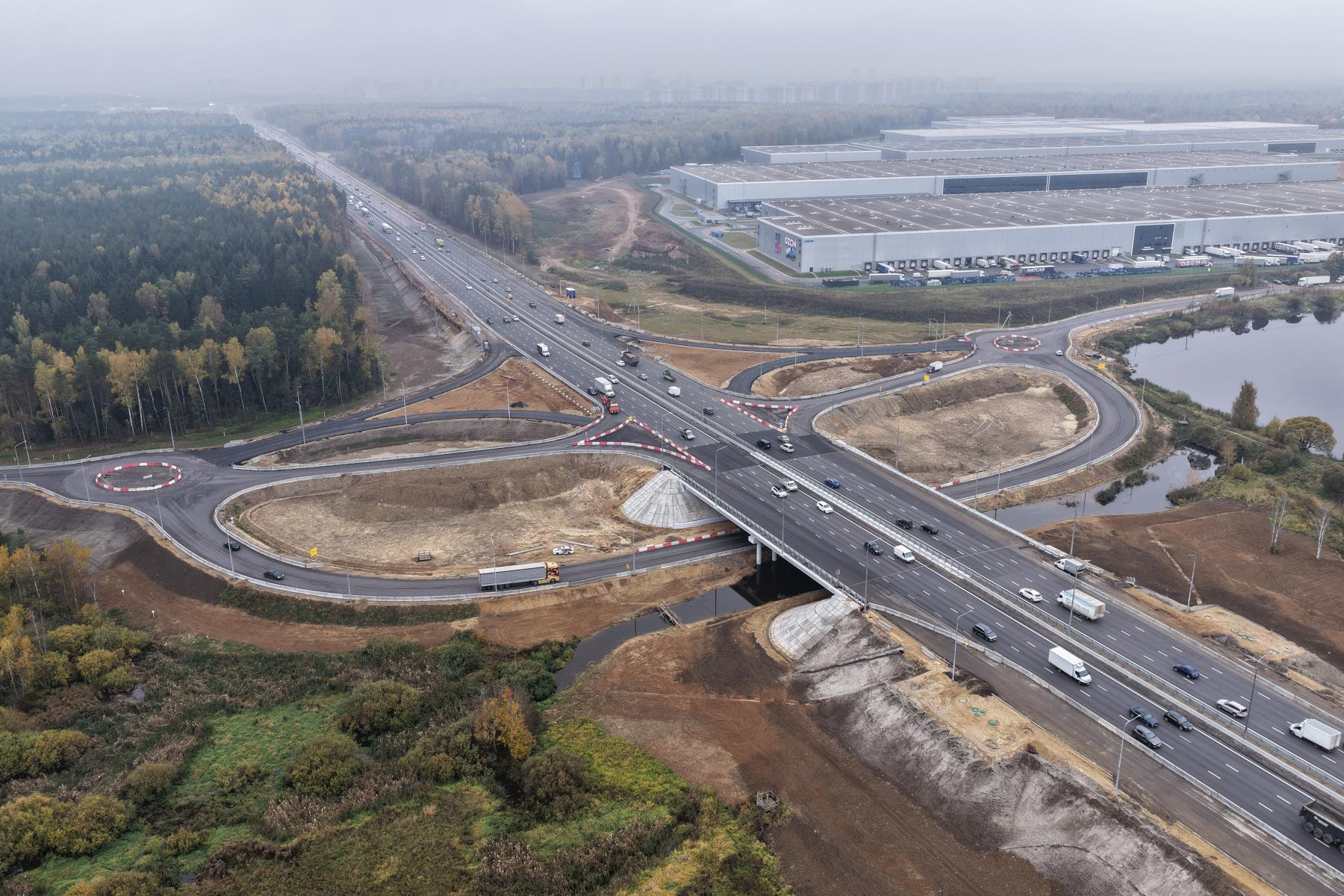 На отрезке автодороги с 40-го по 43-й км дорожники продолжают работы по увеличению полос движения, строительству транспортной развязки и реконструкции подземного пешеходного перехода возле поселков Лесной и Кощейково. А на отрезке с 43-го по 47-й км продолжается устройство земляного полотна и слоев покрытия, установка опор освещения и монтаж барьерного ограждения.