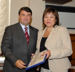 Благодарственное письмо в адрес в адрес Президента Республики Саха (Якутия) Вячеслава Анатольевича Штырова вручается Первому заместителю Министра транспорта, информатизации и связи Республики Саха (Якутия) Марианне Револьевне Никифоровой