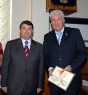 Благодарственное письмо в адрес Президента Республики Татарстан Минтимера Шариповича Шаймиева вручается заместителю Премьер-министра Республики Татарстан, Министру транспорта и дорожного хозяйства Владимиру Александровичу Швецову