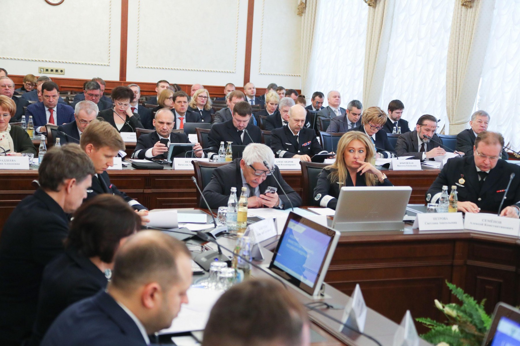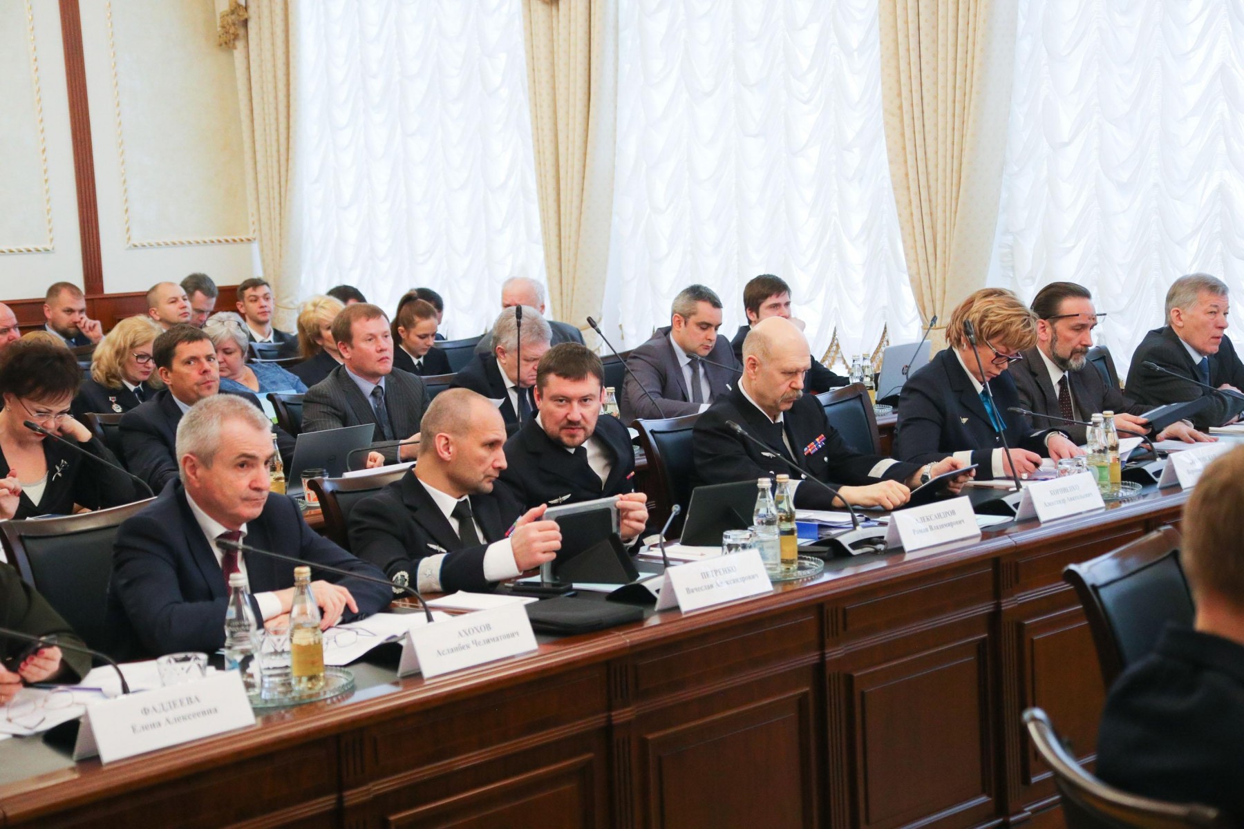 В работе заседания коллегии приняли участие 1-й заместитель Министра транспорта Евгений Дитрих, статс-секретарь – заместитель министра транспорта Сергей Аристов, заместители Министра Николай Асаул, Николай Захряпин, Алан Лушников, Виктор Олерский, Александр Юрчик, руководители федеральных агентств и службы, входящих в состав министерства, представители Администрации Президента РФ и Правительства РФ, члены Совета Федерации и депутаты Государственной Думы, представители федеральных и региональных органов исполнительной власти, руководители предприятий транспортного комплекса.