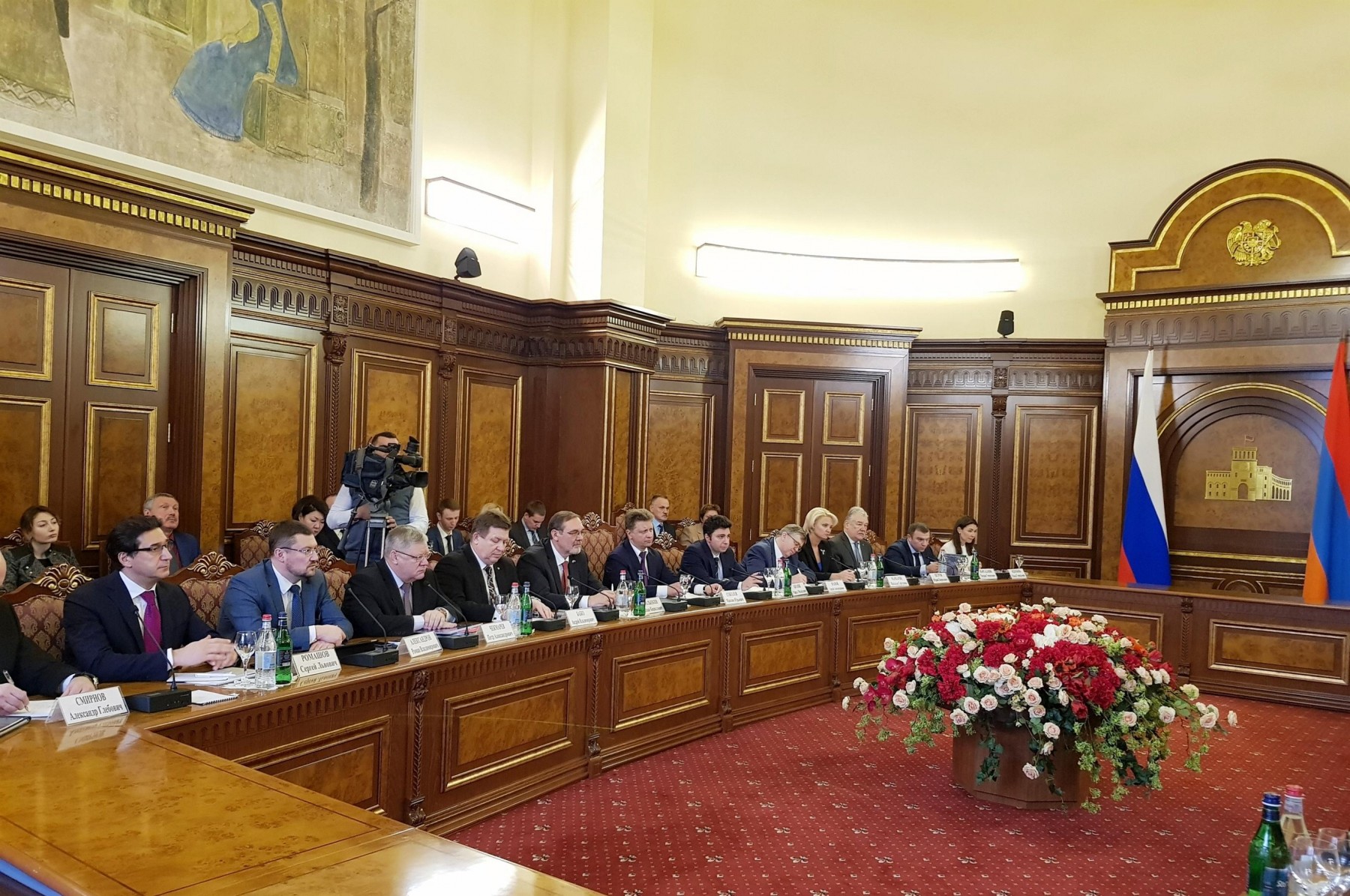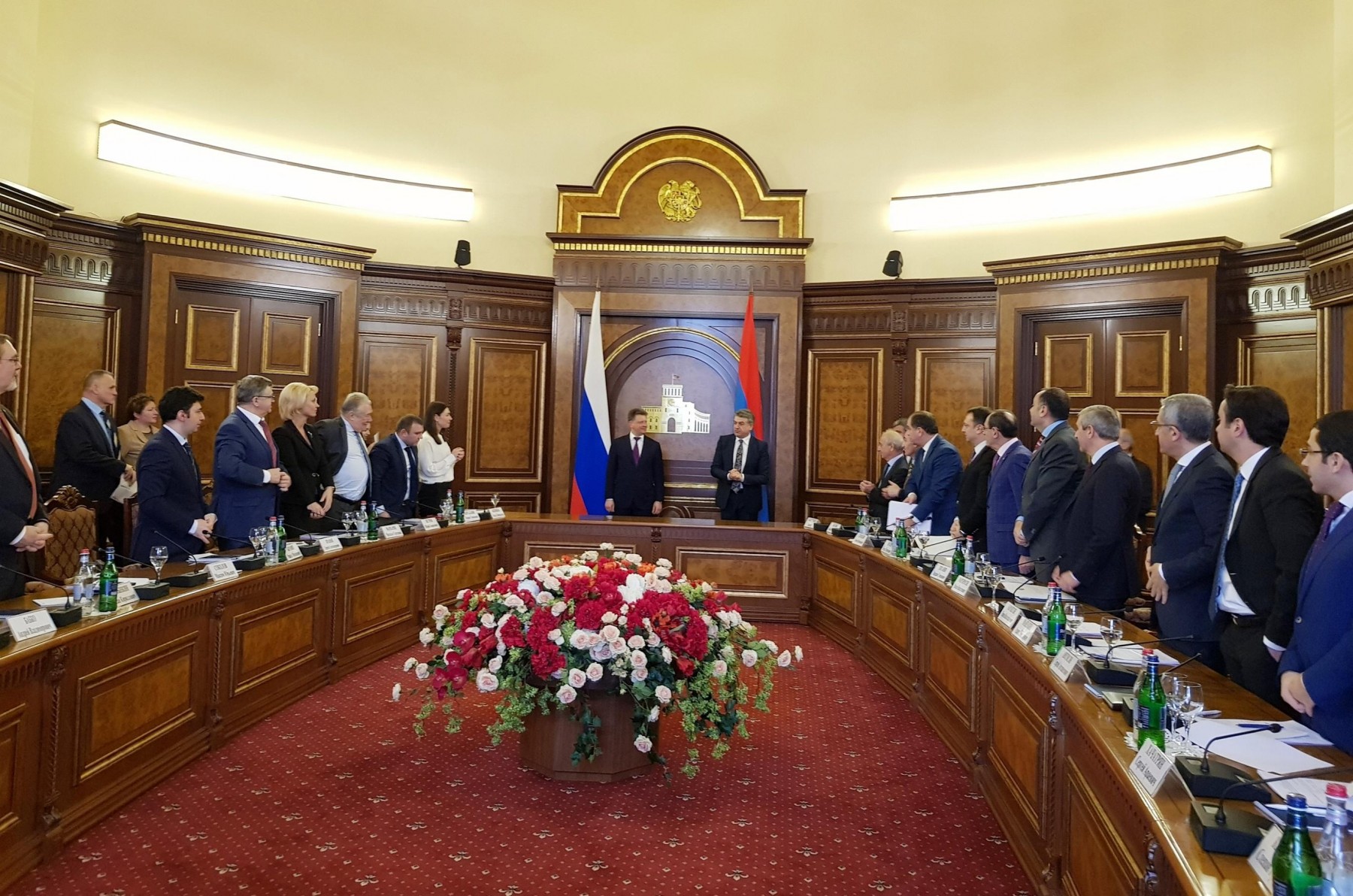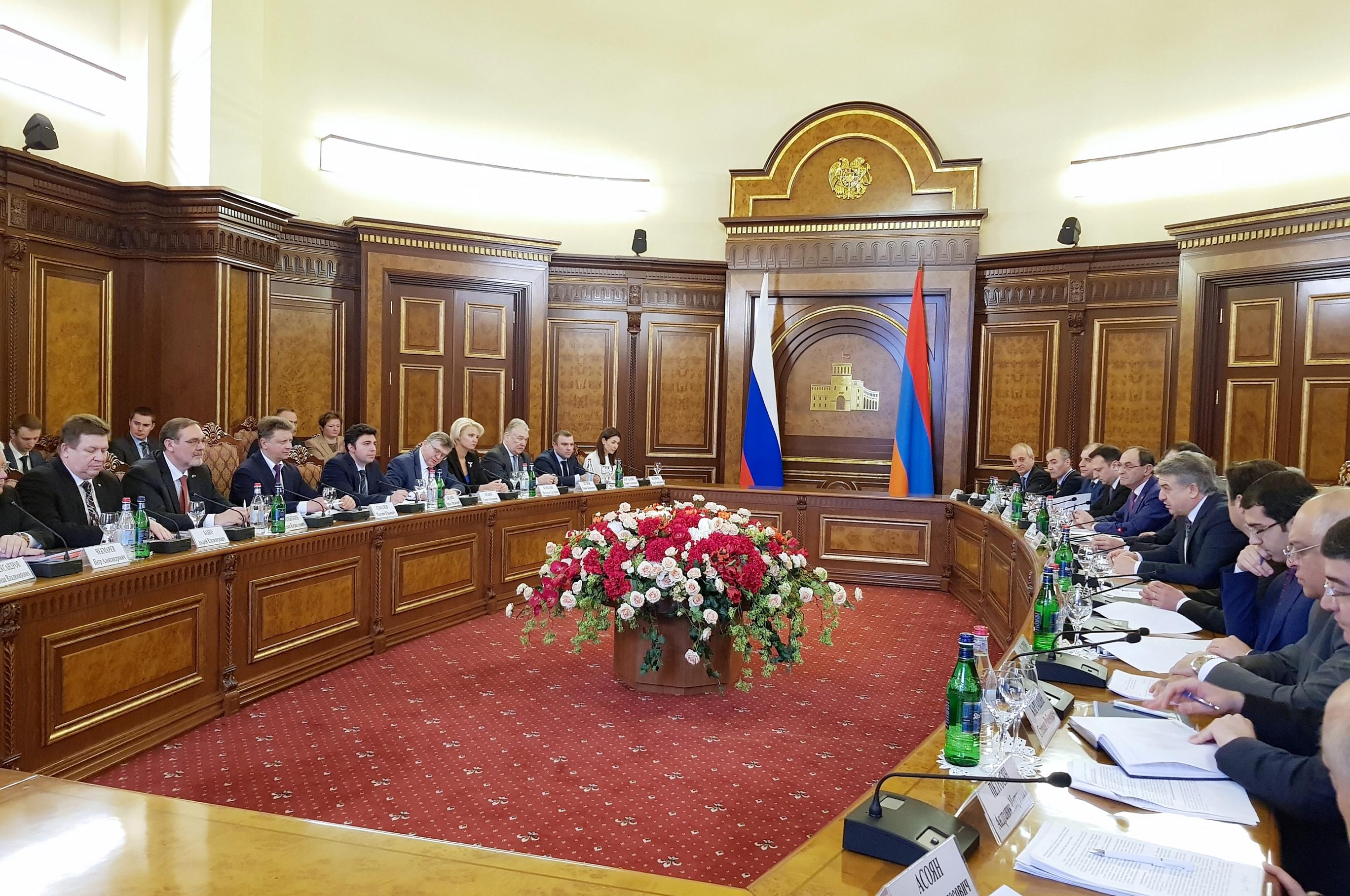 Российскую делегацию возглавил Министр транспорта РФ Максим Соколов, армянскую – Премьер-министр Республики Армения Карен Карапетян.