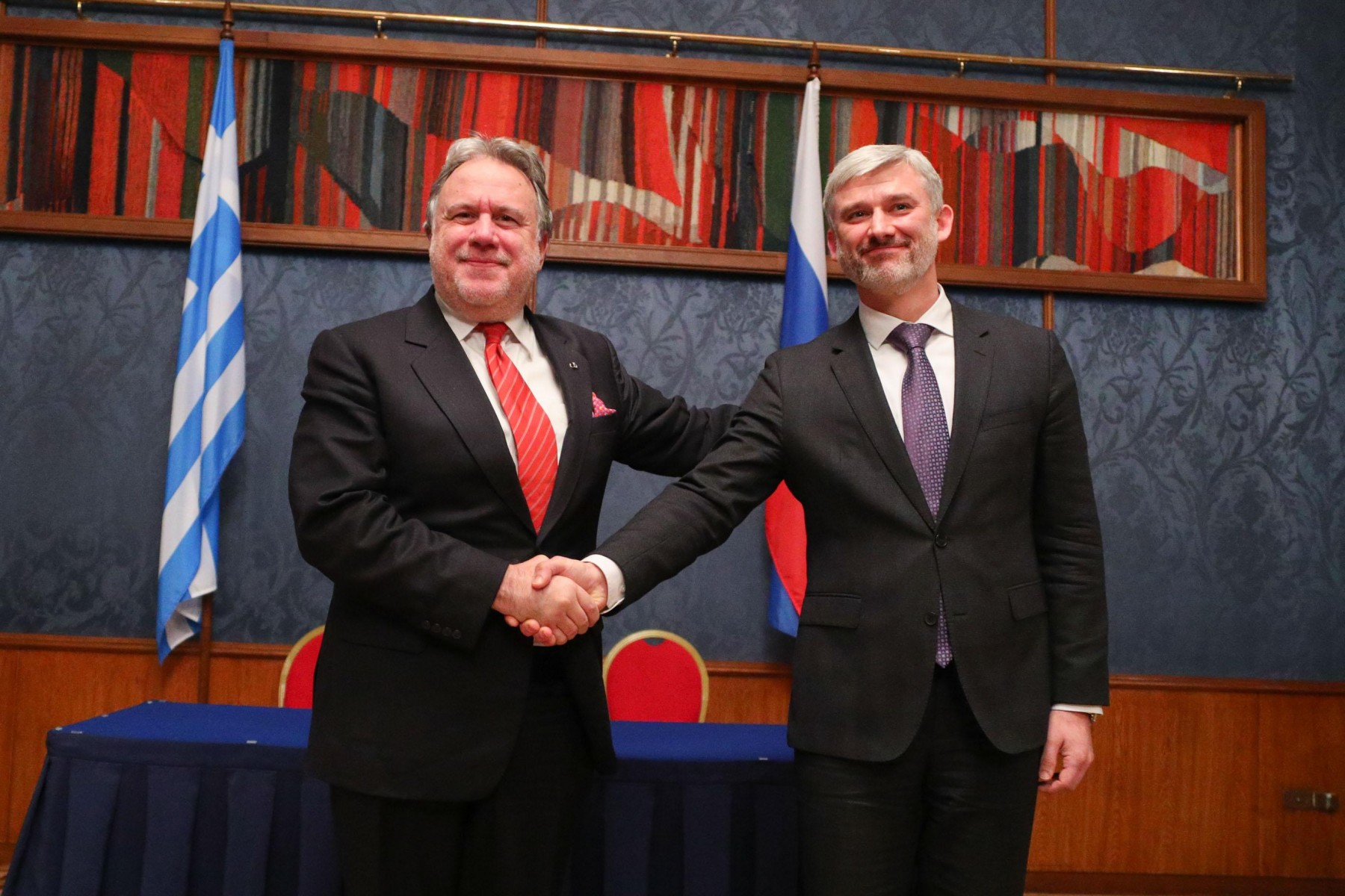 Российскую делегацию возглавил министр транспорта РФ Евгений Дитрих, греческую – первый заместитель министра иностранных дел Греческой Республики Георгиос Катрунгалос.