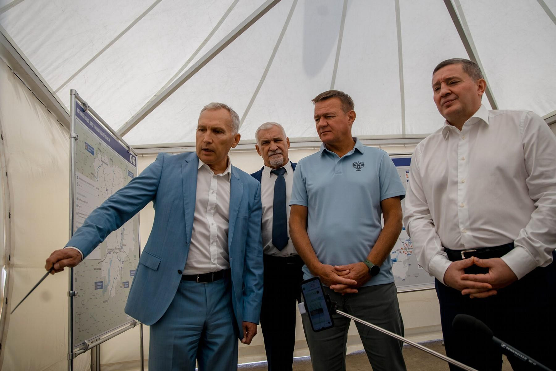 Министр и глава региона также оценили ход работ на опорном для Юга страны дорожном объекте − первом этапе третьего пускового комплекса мостового перехода через Волго-Ахтубинскую пойму.