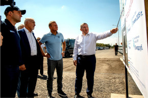 Строящиеся дорожные объекты Волгоградской области осмотрели сегодня Министр транспорта Роман Старовойт и глава региона Андрей Бочаров. Они посетили площадку строительства 2-го этапа обхода Волгограда − стратегического для страны объекта, входящего в международный транспортный коридор «Север − Юг». Данный проект реализуется Росавтодором в рамках поручения Президента России.