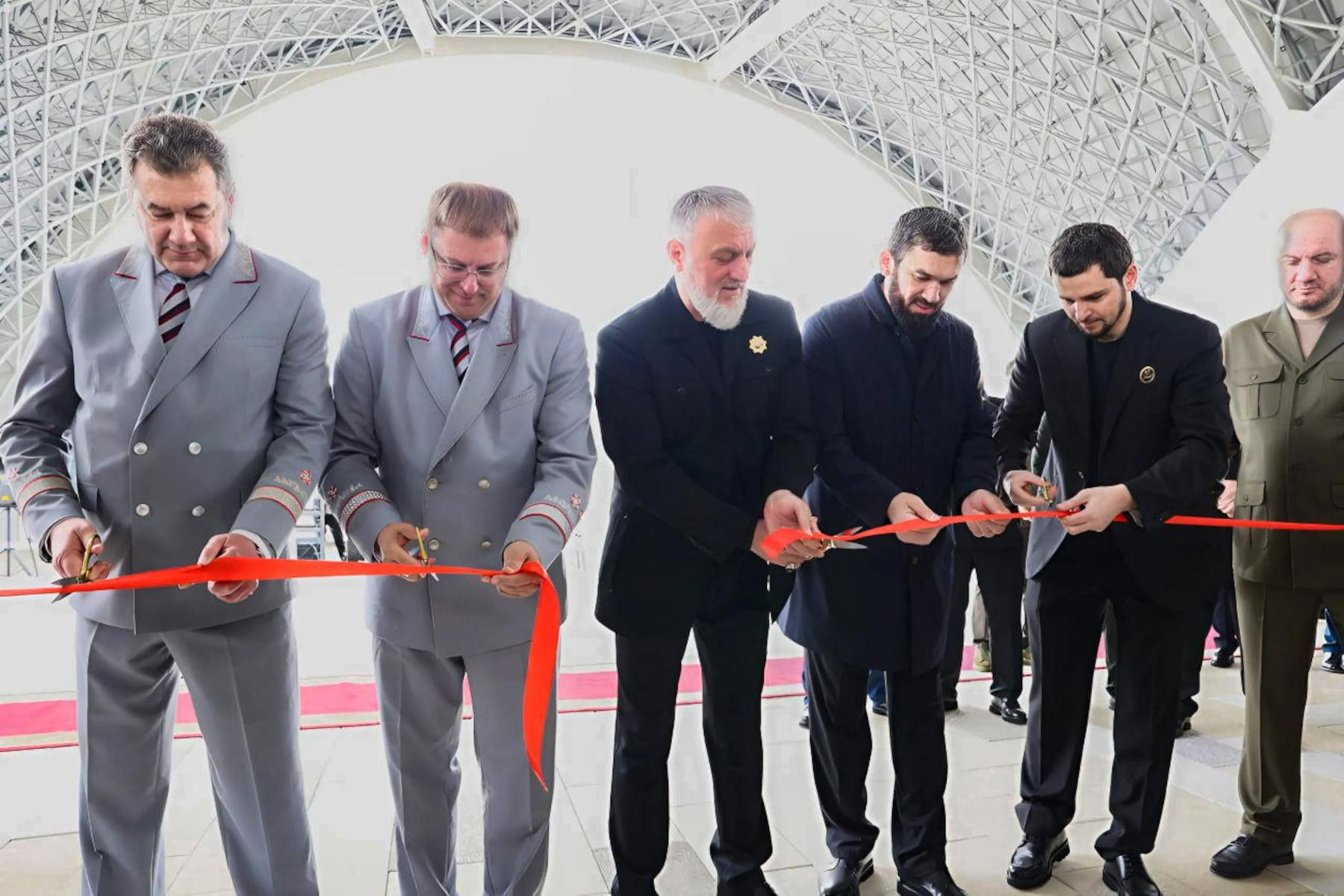 Заместитель Председателя Правительства Виталий Савельев, Министр транспорта Роман Старовойт, председатель Правительства Чеченской Республики Магомед Даудов и генеральный директор – председатель правления ОАО «РЖД» Олег Белозёров в режиме видеоконференции приняли участие в торжественной церемонии открытия нового вокзального комплекса в городе Грозный.