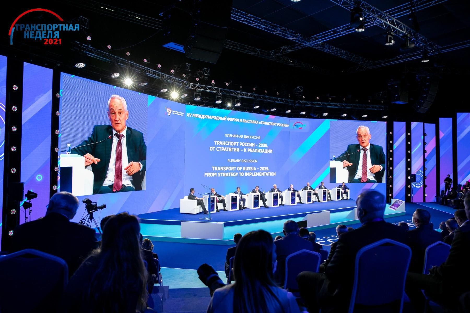 Сегодня в Москве открылся XV Международный форум и выставка «Транспорт России». В рамках форума состоялась пленарная дискуссия «Транспорт России − 2035. От стратегии − к реализации». В ней приняли участие помощник Президента России Игорь Левитин, первый заместитель Председателя Правительства РФ Андрей Белоусов, заместители Председателя Правительства РФ Марат Хуснуллин и Дмитрий Чернышенко, министр транспорта Виталий Савельев, генеральный директор − председатель правления ОАО «РЖД» Олег Белозёров.