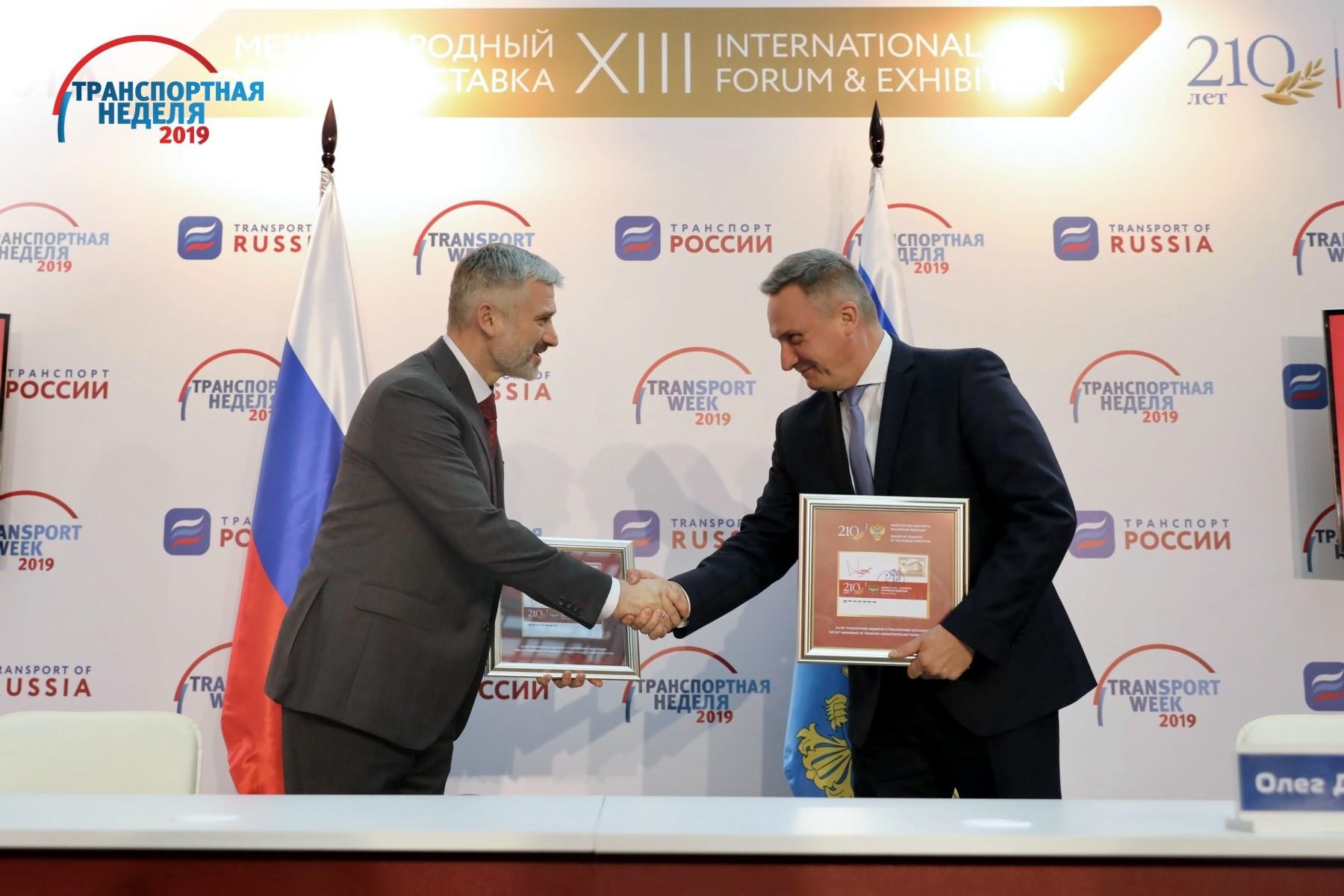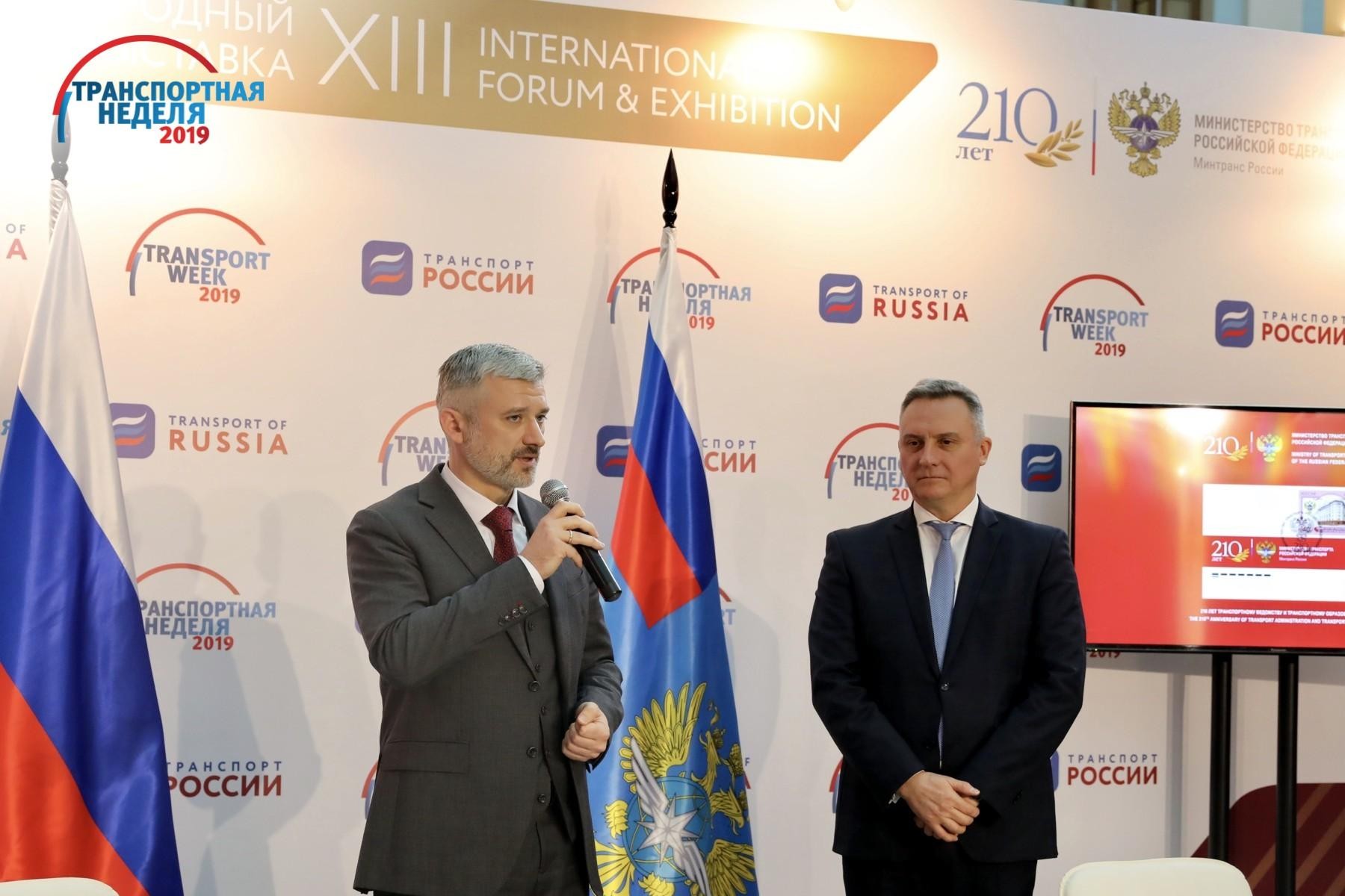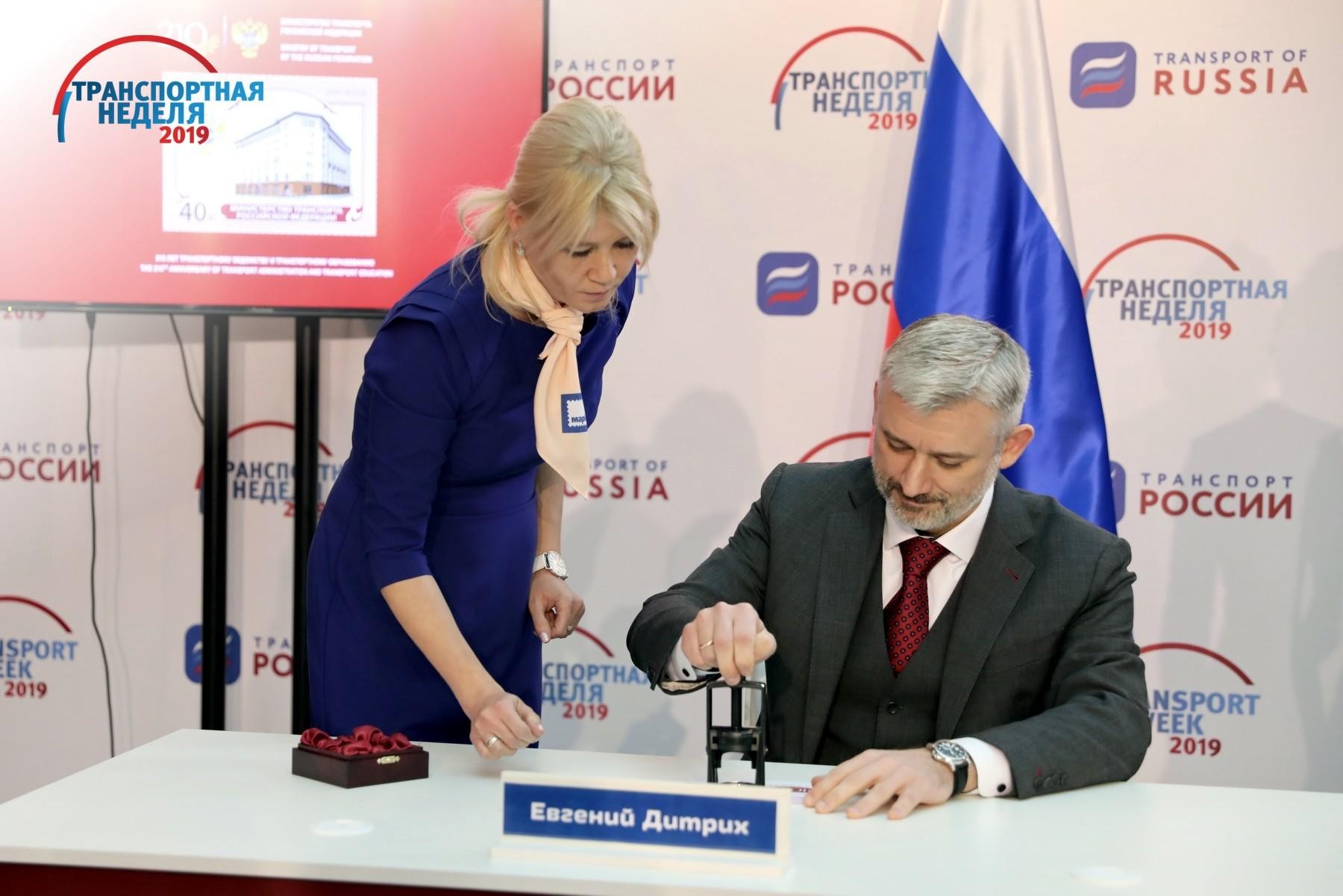 Презентация и гашение почтовой марки, посвященной 210-летию транспортного ведомства и транспортного образования в России, прошли 20 ноября в рамках форума и выставки «Транспорт России». В церемонии принял участие министр транспорта Евгений Дитрих и глава Федерального агентства связи Олег Духовницкий.