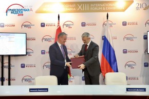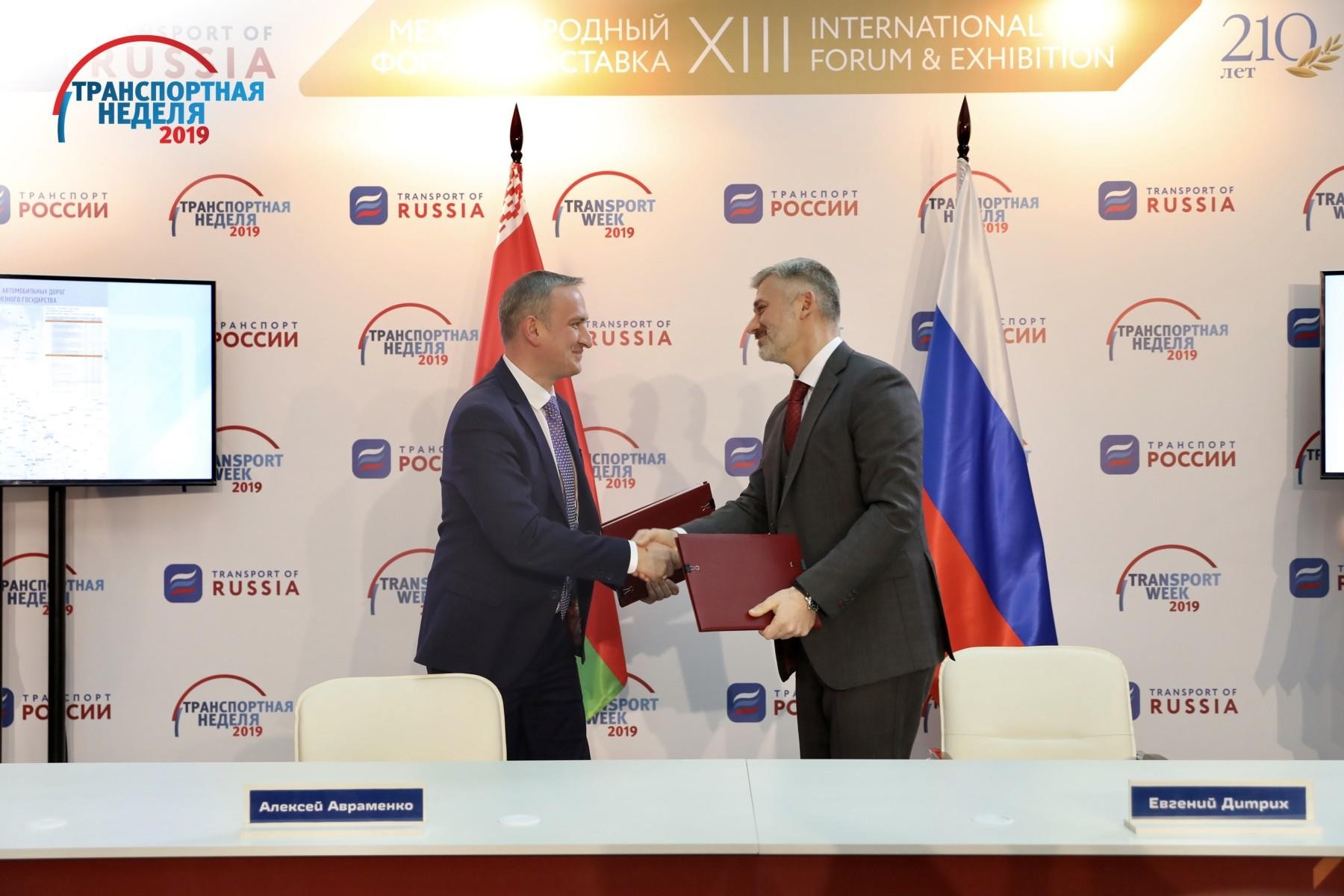20 ноября в рамках мероприятий международного форума и выставки «Транспорт России» министр транспорта РФ Евгений Дитрих и министр транспорта и коммуникаций Республики Беларусь Алексей Авраменко подписали Схему автомобильных дорог Союзного государства и План мероприятий по их совершенствованию.